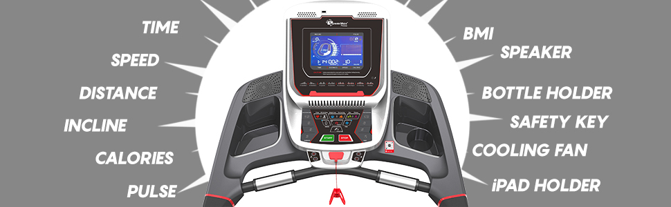 Console Functions | Time, Speed, Distance, Calories, Pulse, Incline & BMI |