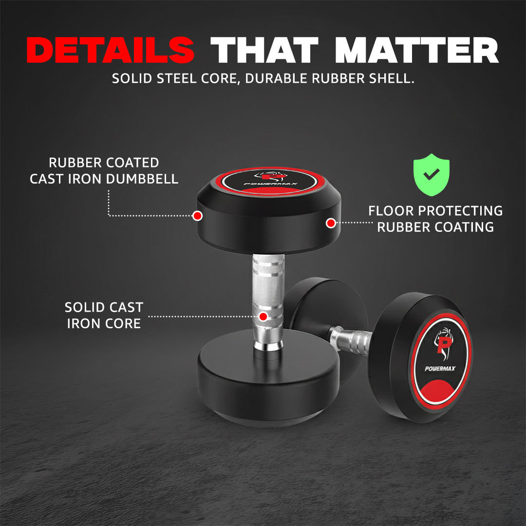 Rounded Rubber Dumbbells are designed for durability, comfort, and safe strength training. Each dumbbell features a solid cast-iron core with a high-quality round rubber coating that reduces noise, prevents floor damage, and ensures long-lasting performance. The ergonomic chrome-plated handles provide a secure, non-slip grip for smooth workouts.
