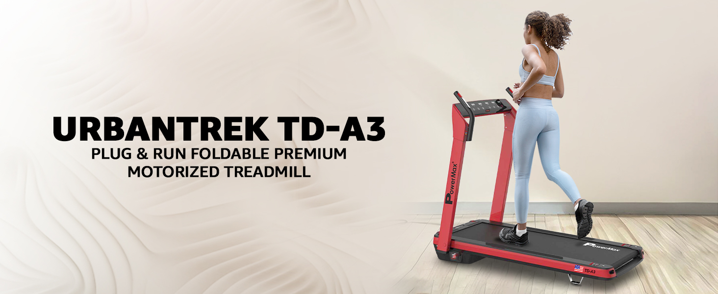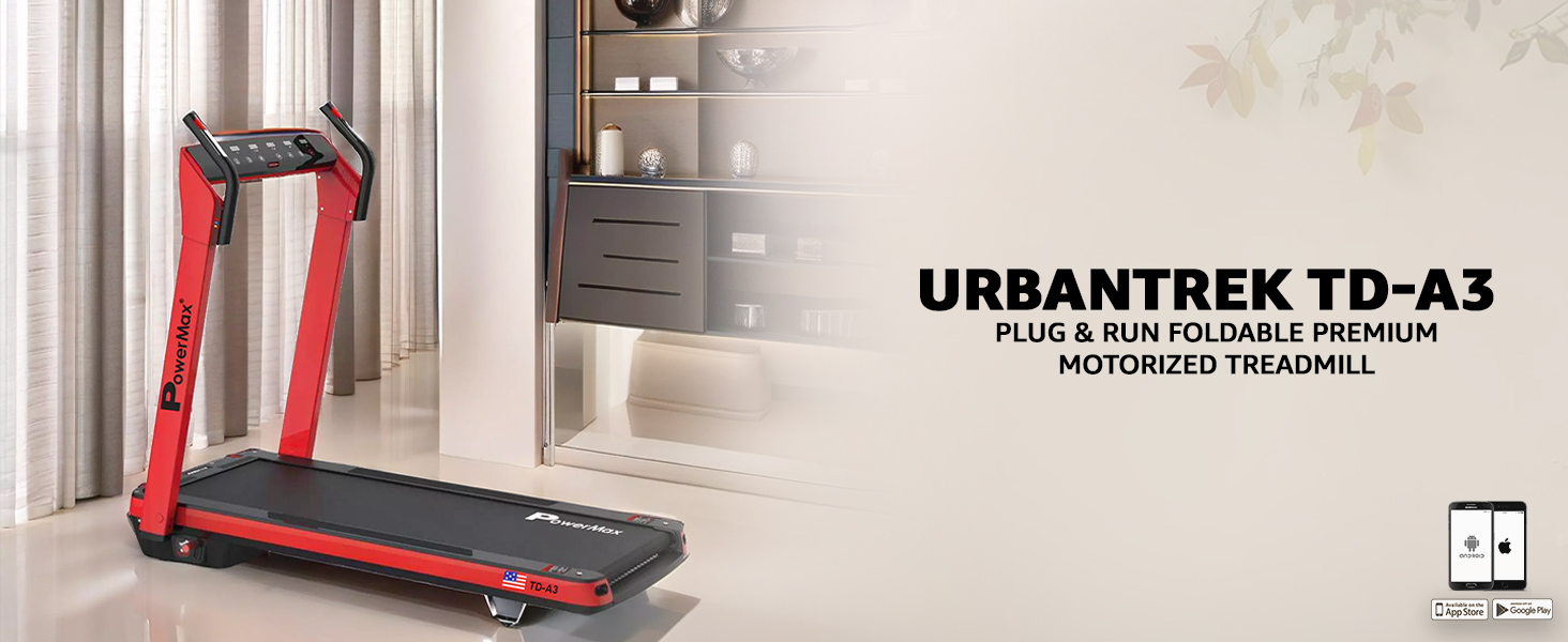 Brace yourself for a transformative journey with the PowerMax UrbanTrek TD-A3 Premium Compact Motorized Treadmill. Its 4 HP Peak DC motor is celebrated for its exceptional build quality and unmatched durability with a maximum speed of 14 km per hour. But that's just the beginning – with a 12 Level Auto Incline and a compact, foldable, space-saving design, this treadmill redefines your workout space. Get ready to unfold a new chapter in your fitness story!