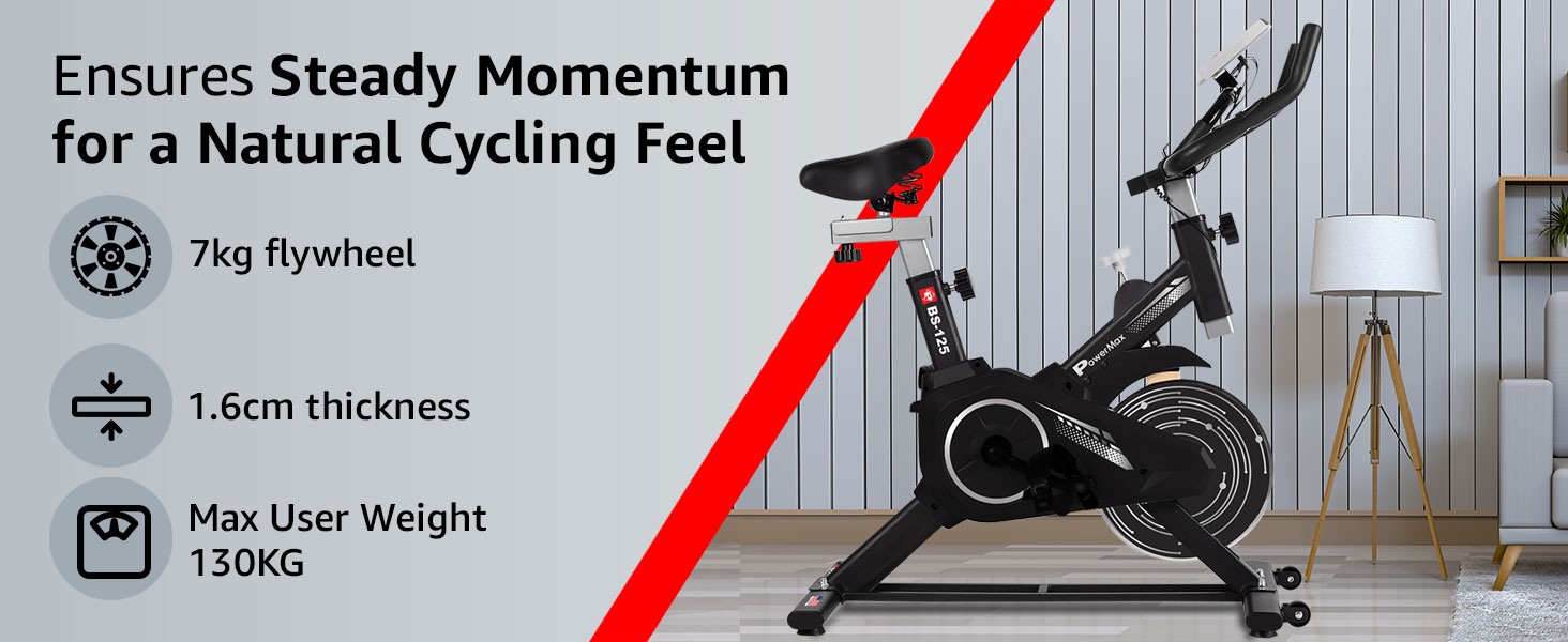 Built for durability and stability, the BS-125 Spin Bike supports a maximum user weight of 130KG. The heavy-duty steel frame ensures long-lasting performance, making it an ideal choice for home workouts.