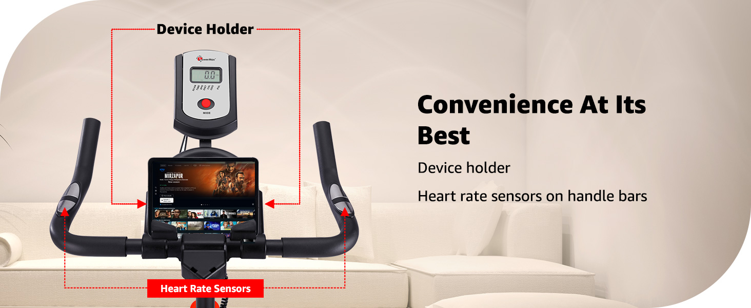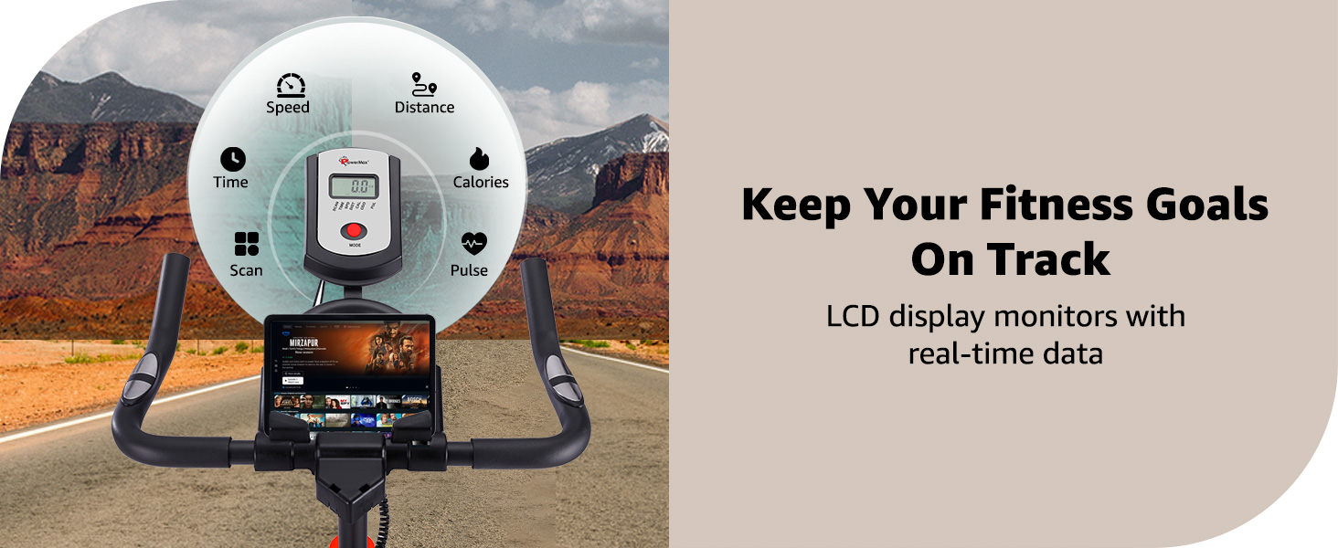 Stay on top of your fitness goals with the LCD display, which provides real-time data on time, speed, distance, calories burned, and heart rate. The integrated pulse sensors on the handlebars ensure accurate heart rate monitoring, helping you maintain optimal training zones and maximize efficiency.