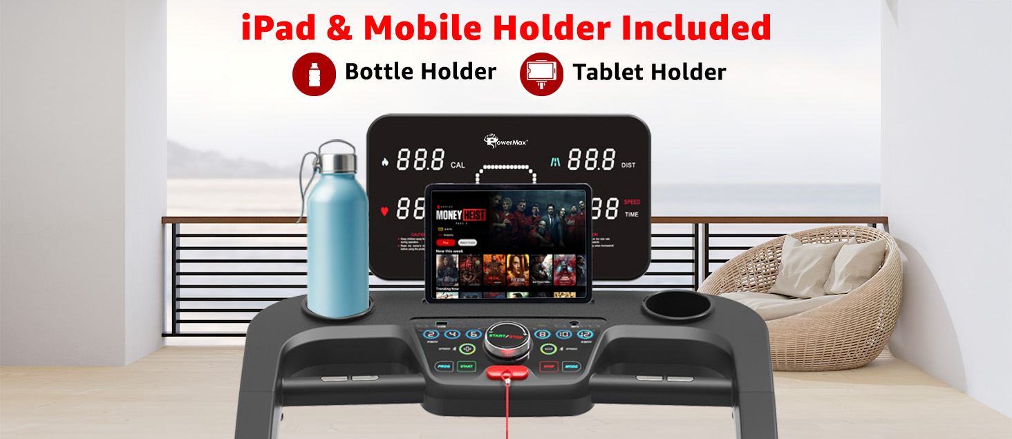 Stay entertained or follow fitness routines using the built-in iPad and mobile holder. Whether you want to stream music, watch videos, or follow guided workouts, your device stays securely in place. It adds convenience and motivation to every training session.